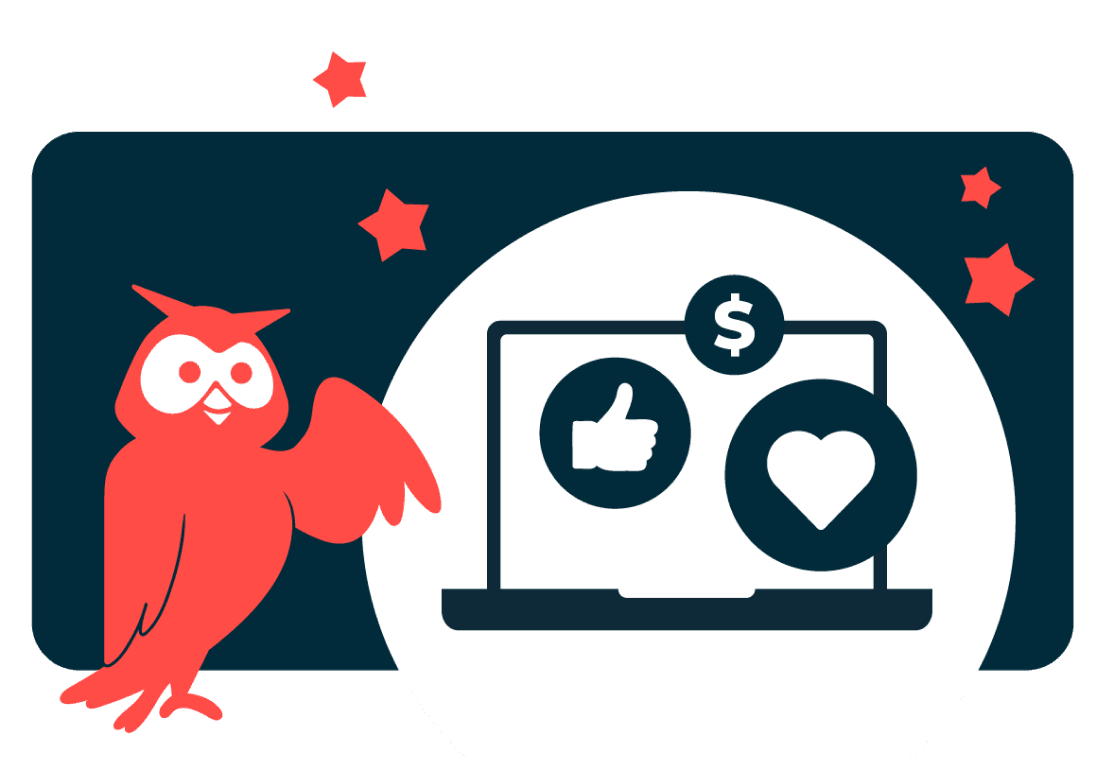 Usa nuestro kit de marca de afiliados para personalizar tu contenido con el icónico búho rojo.